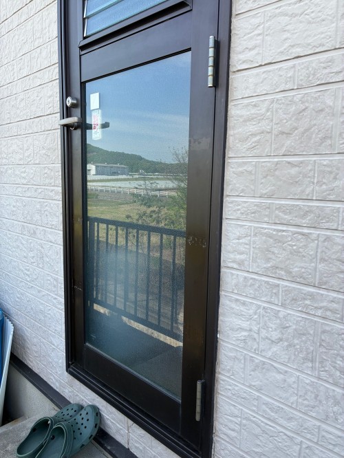 ご依頼内容 勝手口ドアの下半分がガラスなので、格子を取り付けしたい。